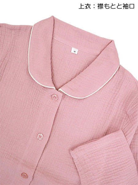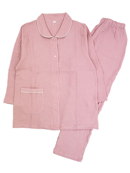 NERUGY 婦人長袖・長パンツパジャマ 綿100%ダブルガーゼ 無地