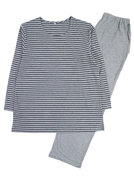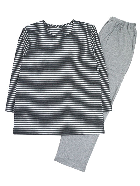 NERUGY 婦人長袖・長パンツパジャマ 綿100% 天竺 細ボーダー柄×無地