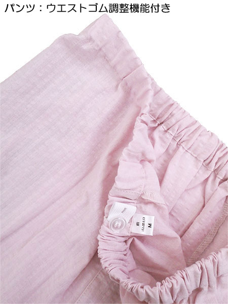 パンツ:長パンツ、ポケットなし、ウエストゴム調整機能付き、ウエストゴム取り替え口付き。