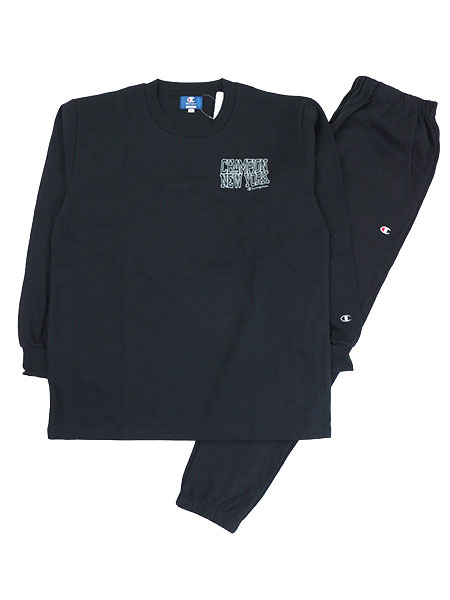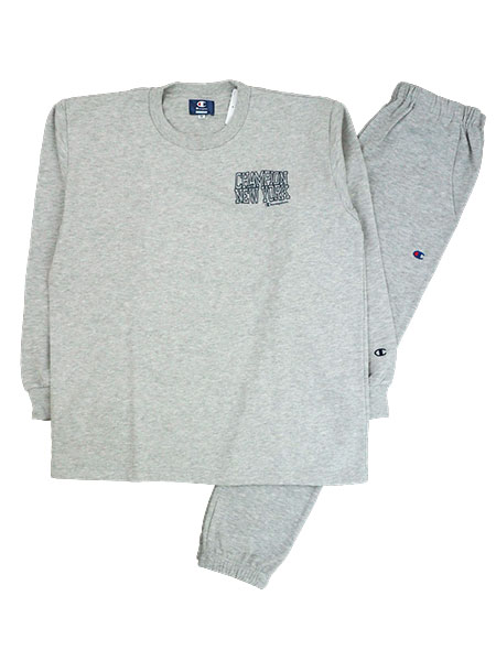 グンゼ Champion(チャンピオン)紳士長袖・長パンツパジャマ 裏毛起毛 左胸にロゴプリント