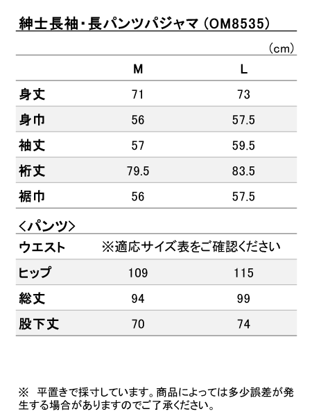 パンツ:前とじ、裾ゴム入り、左ポケットに刺繍、両サイドポケット付き、ウエストゴム取り替え口付き。