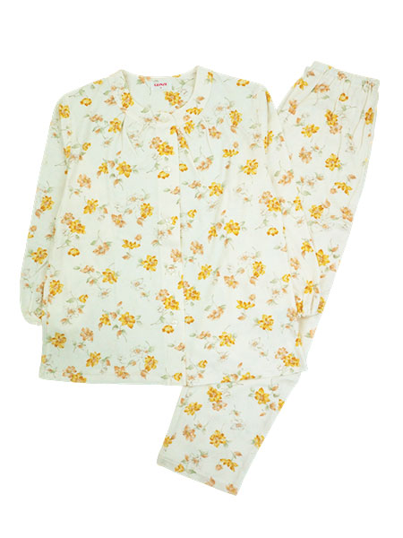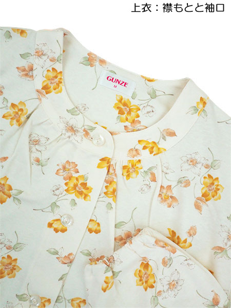 GUNZE(グンゼ)婦人長袖・長パンツパジャマ 花柄 綿100% スムース