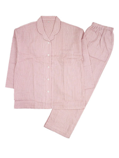 素材は春夏に適したWガーゼ素材を使用しています。ストライププリント。袖・足口ゴム通し穴付き。
