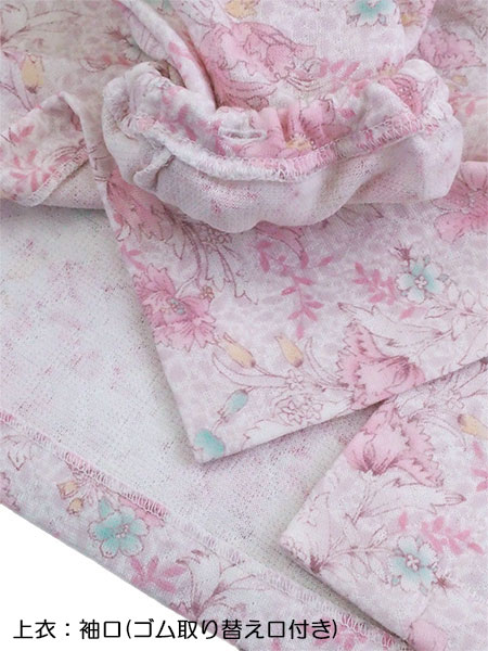 上衣:前あき、袖口ゴム絞り、ポケットなし。
