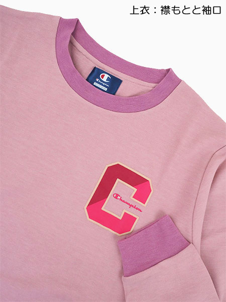 グンゼ Champion(チャンピオン)婦人長袖・長パンツパジャマ 左胸ロゴプリント かぶりタイプ