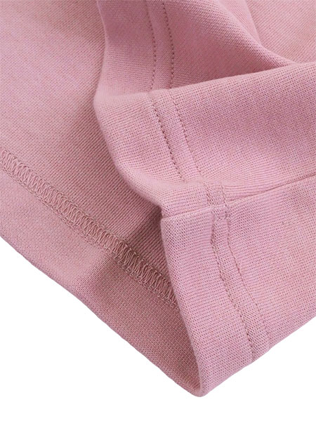 上衣:かぶりタイプ、左胸にロゴプリント、襟周りと袖口リブ、ポケットなし。