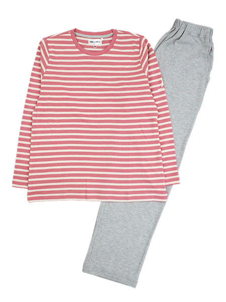 グンゼ コムシコムサ 婦人長袖・長パンツパジャマ ボーダー柄 スムース かぶりタイプ
