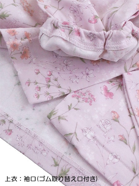 上衣:前あき、袖口ゴム絞り、ポケットなし。