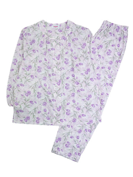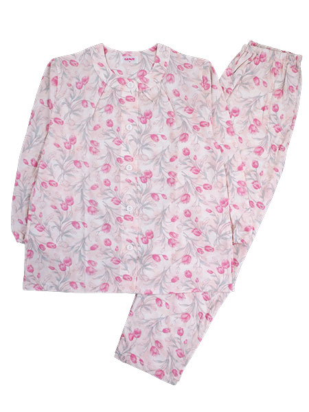 グンゼ 婦人長袖・長パンツパジャマ 保湿加工&抗菌防臭加工 綿100%天竺 花柄