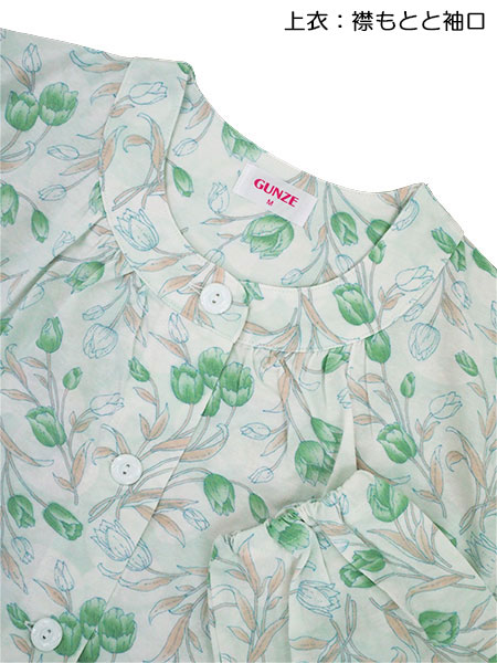 GUNZE(グンゼ)レディース長袖パジャマ、保湿加工&抗菌防臭加工、花柄。