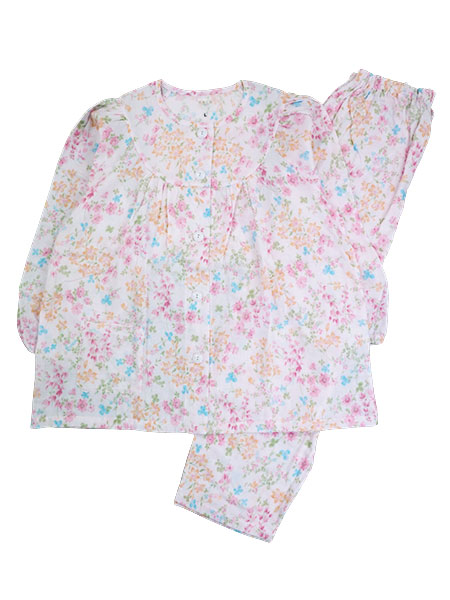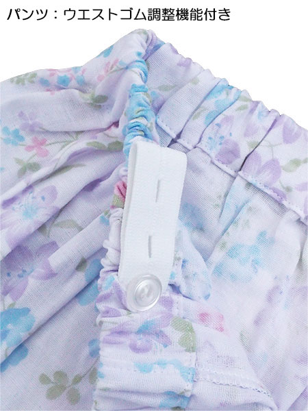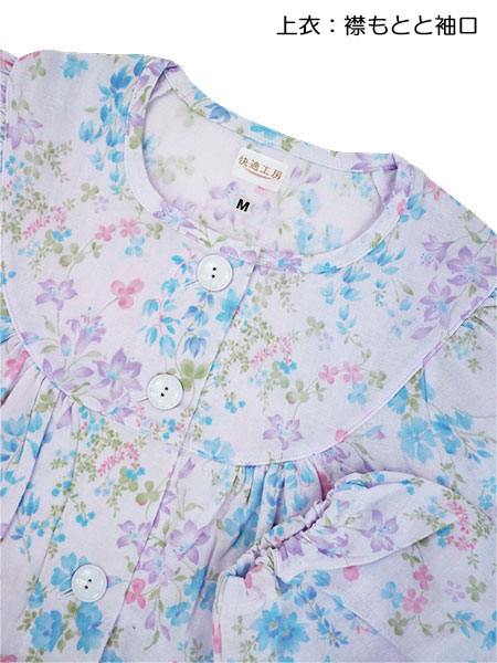 グンゼ 快適工房 婦人長袖・長パンツパジャマ 着替えがらくらく 綿100%Wガーゼ 花柄