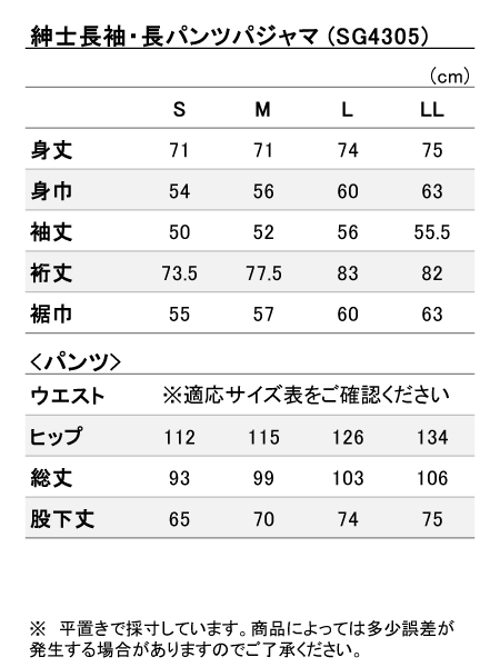 パンツ:前あき、裾リブ、ポケットなし、ウエストゴム取り替え口付き。