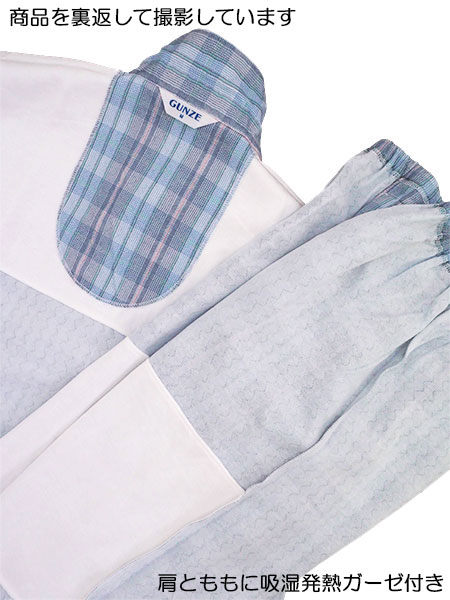 冷えやすい肩とももの重ね布にグンゼオリジナルの吸湿発熱素材を採用したダブルの暖かさ。