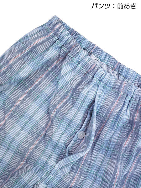 パンツ:前あき、ポケットなし、ウエストゴム取り替え口付き。