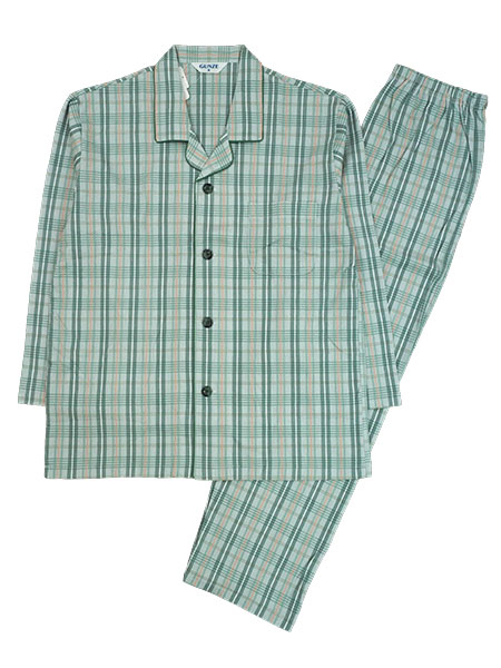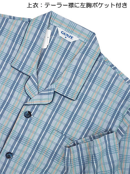 グンゼ 紳士長袖・長パンツパジャマ 京都捺染 日本製 綿100%スムース