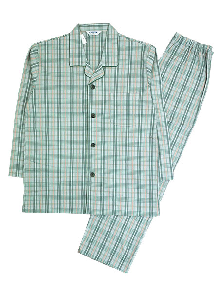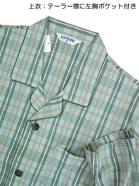 グンゼ 紳士長袖・長パンツパジャマ 京都捺染 日本製 綿100%スムース