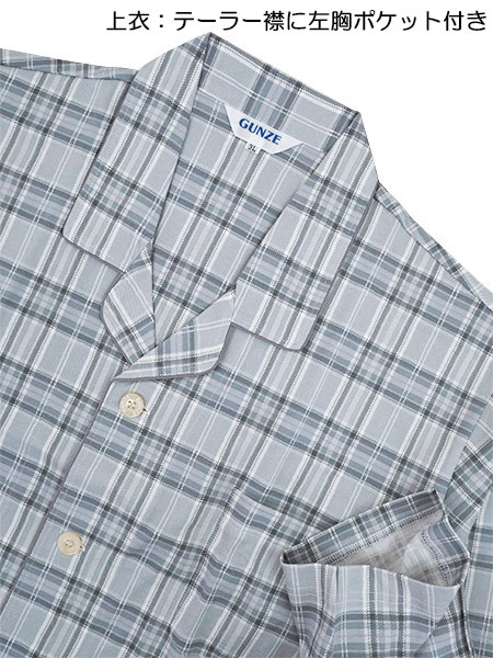GUNZE、COOLMAGICのメンズパジャマ、サラッとさわやか吸汗速乾、チェック柄。