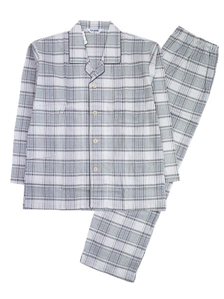 グンゼ 紳士長袖・長パンツパジャマ 日本製 高島ちぢみ 綿100% チェック柄