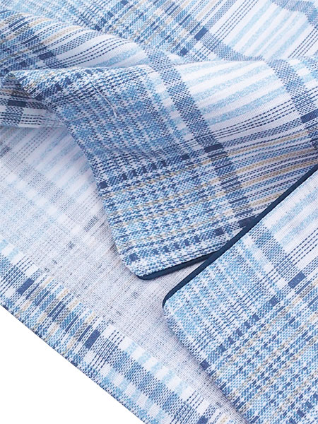織物に独特なシボ(凸凹)を作り肌ヘの接触面積を少なくし、サラッとした肌触りで吸汗性にすぐれ、高温多湿な日本の風土に適した涼感素材です。