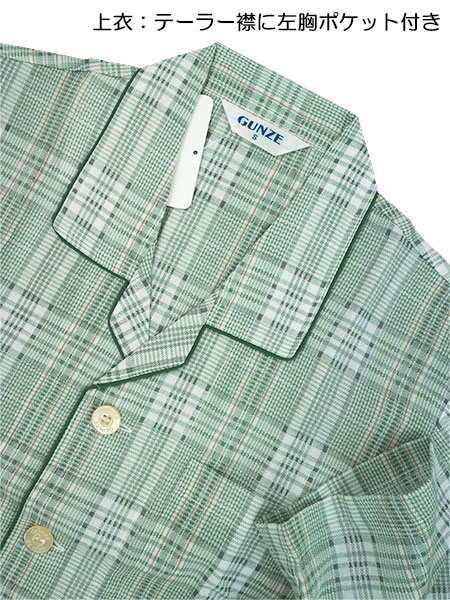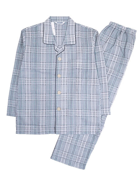 グンゼ 紳士長袖・長パンツパジャマ 大きめ釦 京都捺染 綿100%ソフトクレープ