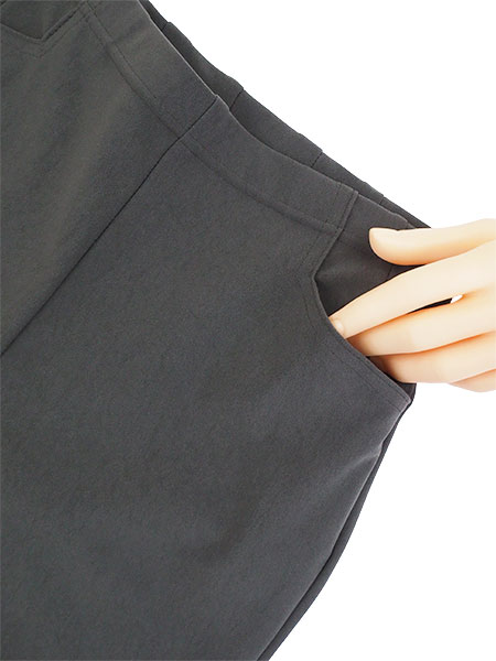 ウエスト約2.5cm巾の板ゴム。両サイドにポケット付き。