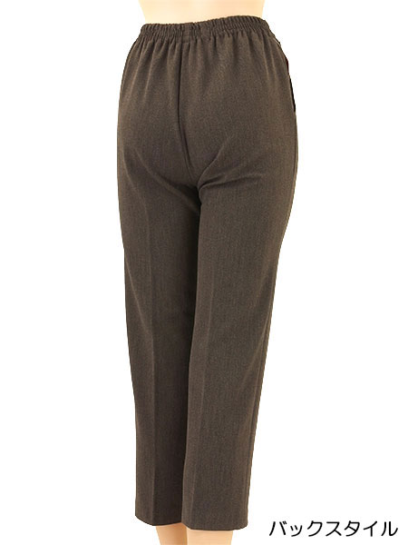 上品なシルエットではきやすいおしゃれパンツのレディーススラックス、股下60cm丈。