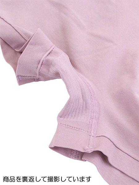 サイドに縫い目がなく、洗濯絵表示は転写プリントでチクチクを軽減。
