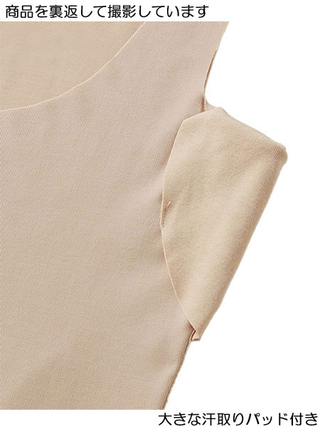 脇汗対策:汗取りパッド付きで、汗ジミ対策も。抗菌防臭加工。