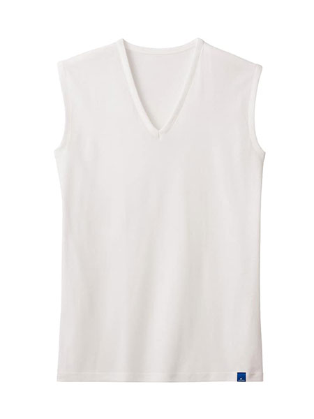 GUNZE クールマジック、100%天然冷感、メンズVネックスリーブレスシャツ。