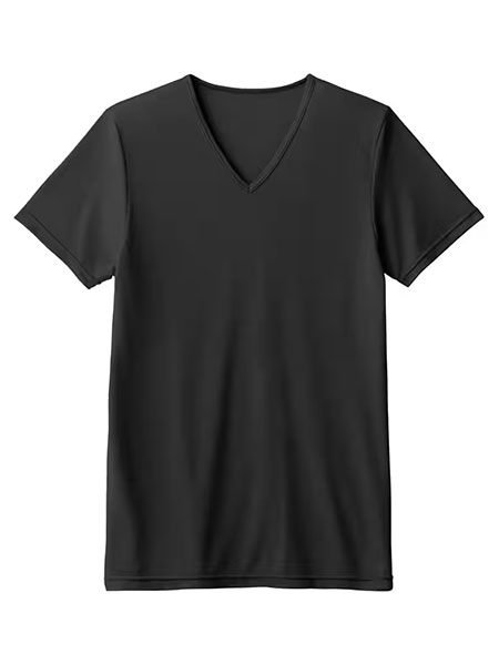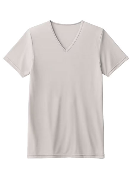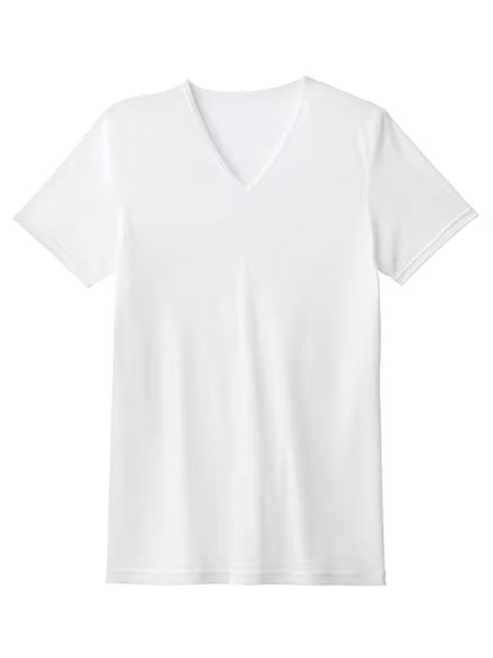 GUNZEのアセドロン、メンズのVネックTシャツ、鹿の子素材。