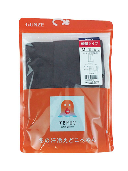 GUNZE(グンゼ)ファイヤーアセドロン、メンズのニーレングス(前あき)。