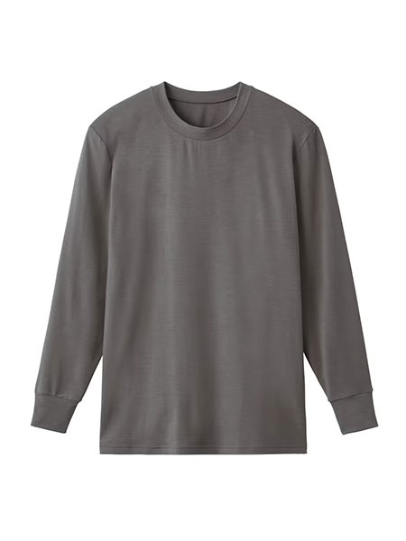 GUNZE(グンゼ)FIREアセドロン、メンズクルーネックロングスリーブシャツ(丸首)。