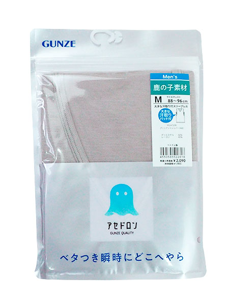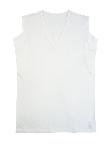 GUNZEのアセドロン、メンズのVネック、大きな汗取り付スリーブレスシャツ、鹿の子素材。