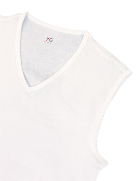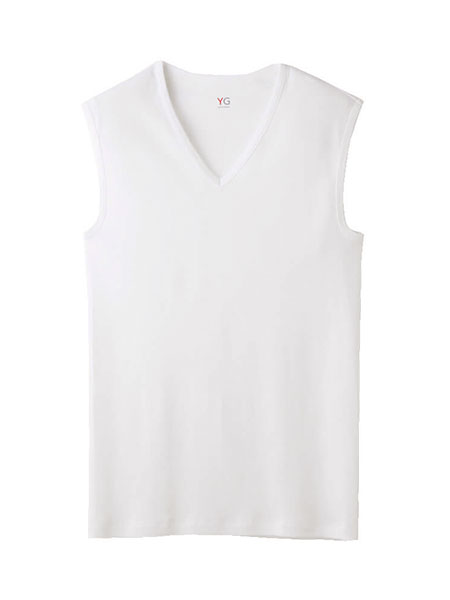 グンゼのYG(ワイジー)、メンズVネックスリーブレスシャツ(V首)、ふんわりここちよいピュアコットン。