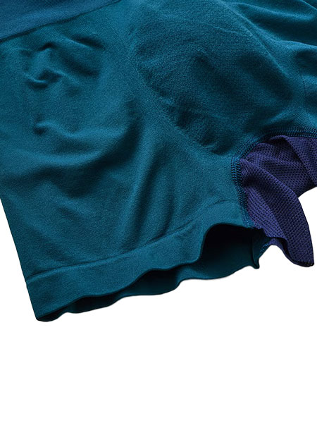 股下部には伸縮性と通気性に優れたメッシュカットオフ素材を採用。