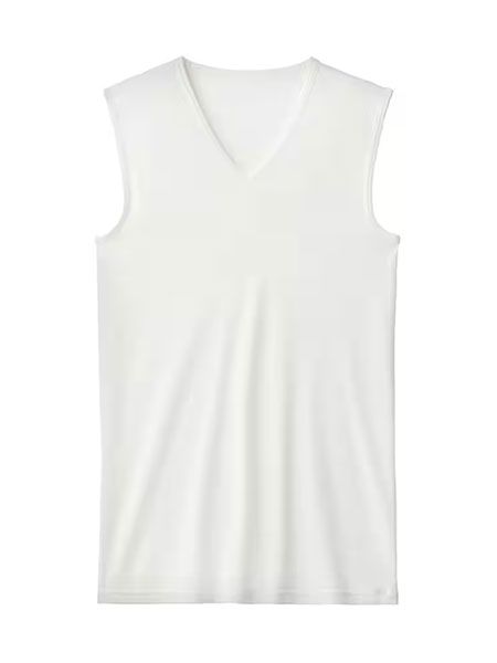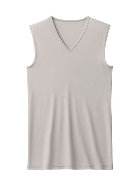 GUNZEのアセドロン、メンズのVネックスリーブレスシャツ、鹿の子素材。